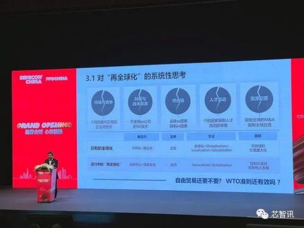 陈南翔认为,目前这一历经多年建立起来的有效秩序发生了变革,和谐五要素一个接一个被打破。台积电创始人张忠谋先生曾表示“全球化已死”,陈南翔赞同这句话,并表示半导体产业正在经历一个新阶段——再全球化,也就是半导体产业以往的国际合作规则迅速瓦解,各国都在追求把控产业链,使芯片“本地制造”。