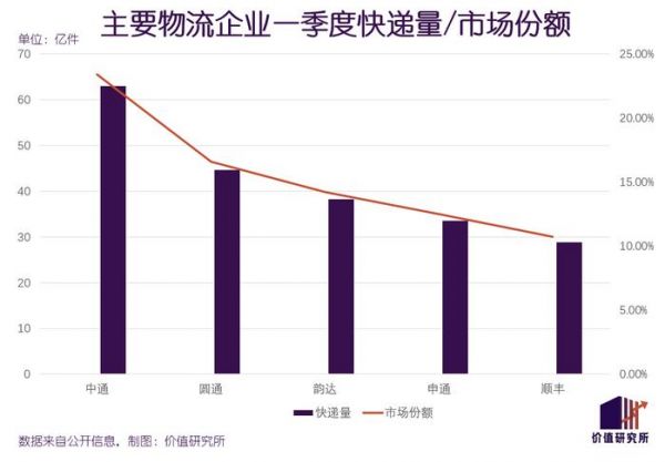 按业务量计算,中通、韵达才是中国物流行业的老大,过去一年市场份额合计接近40%,顺丰只排在第四,京东物流不进前五。作为三通一达的基本盘,传统电商件业务量大、需求稳定,也确保了这几家老牌快递企业的下限。