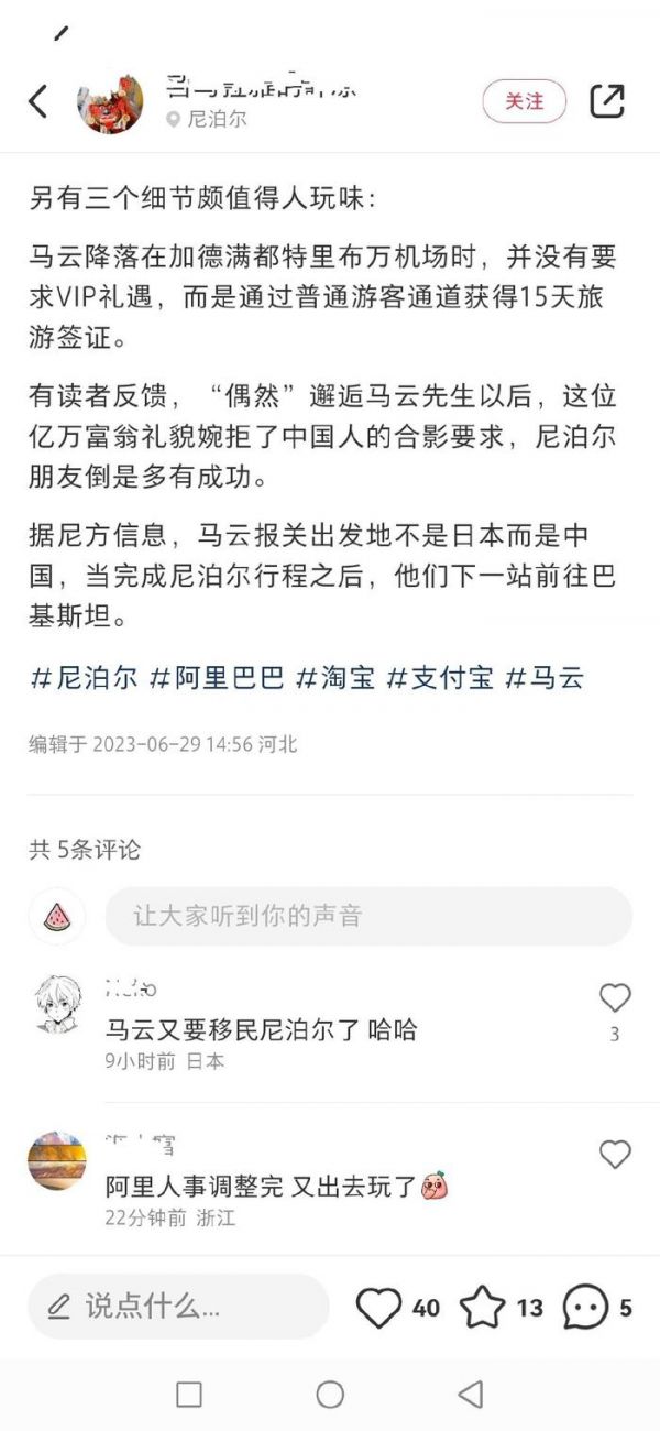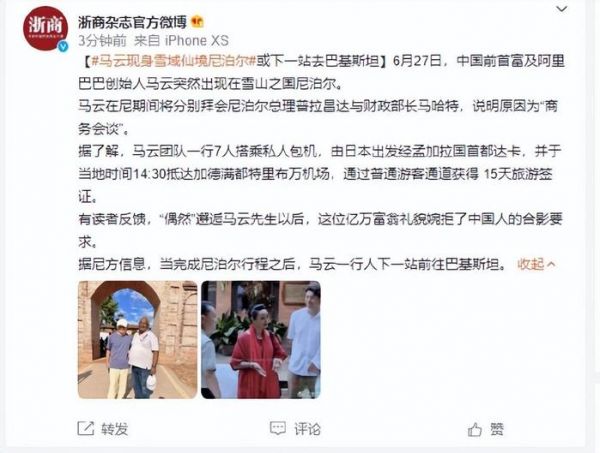 开始的时候大家还不相信马云已经出国了,没想到的是当地的粉丝和他同框后大家才知道是真的,据悉马云降落在加德满都特里布机场时候,并没有要求VIP礼遇,而是通过普通游客通道获得15天的旅游签证。马云离开机场后住在当地德瓦里卡酒店豪华套房,并计划之后前往奇特旺国家公园的梅格豪利赛莱度假村。