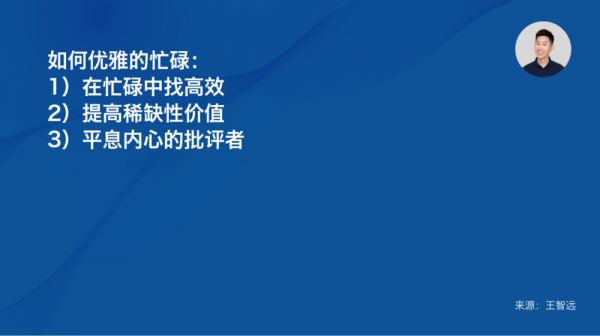如何从忙碌中,找到真正感觉到忙碌的原因,并通过全身心投入、合理的安排,和适时退出的方式,让“忙”和“碌”和谐相处。