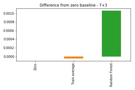 比如“随机森林”(The Random Forest)模型,其结果无论是和零预测还是平均值都相去甚远,这意味着,它虽然从数据中学到了一些东西,但在实际的验证过程中却完全没有体现出来。