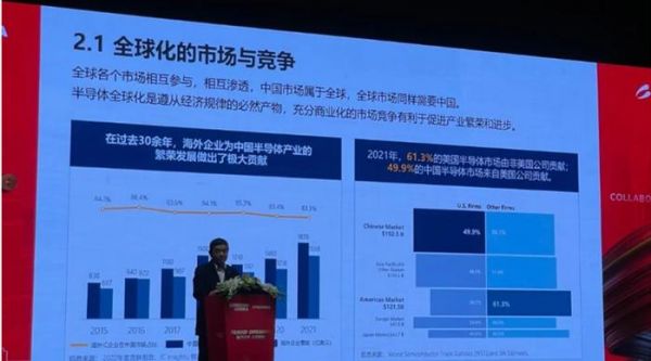 以半导体产业全球化的具体表现来说,陈南翔董事长指出,过去三十多年,中国的市场一直在快速的发展当中,但中国的市场中80%以上是来自于海外企业,与此同时,美国的半导体市场,大概也有60%以上的产品贡献来自于非美国的企业。这充分说明,中国的市场属于中国半导体产业,也属于全球。美国的半导体市场也一样,不仅属于美国的半导体行业,也属于全球。这就充分证明了全球化的市场与竞争,对产业的发展和促进是非常重大的一个驱动要素。
