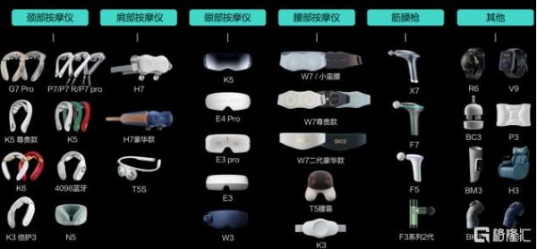 综合市场资料来看,未来穿戴是一家专注为个人与家庭提供智能可穿戴健康产品及服务的高新技术企业,通过SKG品牌开展相关业务。SKG的产品立足于"大型设备小型化"的理念,主要产品包括颈椎按摩仪、腰部按摩仪、筋膜枪、健康手表等。