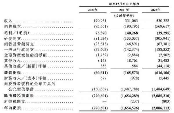 2020年及2021年,速腾聚创的毛利率分别是44.1%、42.4%,2022年的毛损率为7.4%。