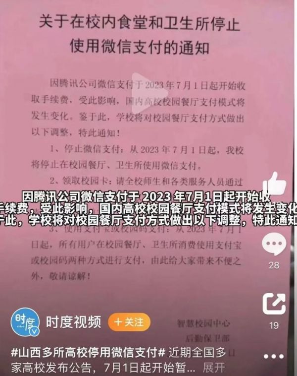 毕竟,细看那些宣布要停用微信支付的高校发布的声明,你会发现,大家收到的通知应该是非常统一且明确的——除了交学费不收手续费,其他都要收钱。
