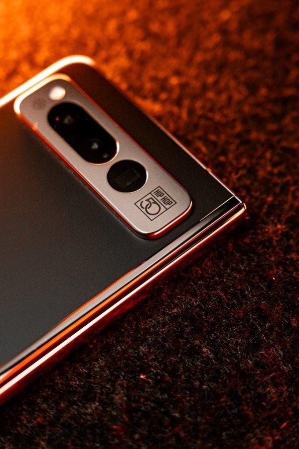 限量版套装从包装盒就开始了定制,正面印制了 “Hip Hop 50” 和 “G Pixel” 的烫金字体,手机本身采用了黑曜石配色,侧面按键和相机模组也采用了定制配色,在相机模组旁也有 Hip Hop 50 的标志。