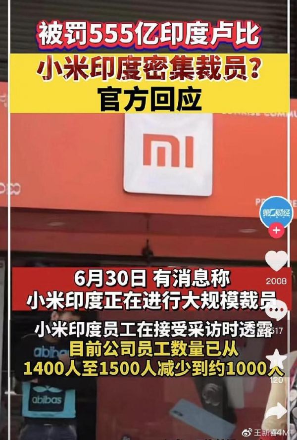 6月30日,根据媒体报道,小米印度正在进行大规模裁员。一位小米印度员工在接受媒体时透露,目前公司员工数量已从1400人至1500人减少到约1000人。过去一周内公司就解雇了约30名员工,未来几个月可能会有更多人被裁。