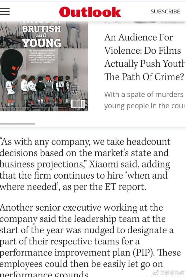 小米印度方面对外的回应是:“与任何公司一样,我们会根据市场状况和业务预测做出员工数量的规划。也并不排除对无法满足要求的员工进行合理优化。”