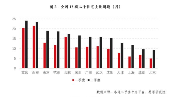与此同时,上海易居研究院监测的数据显示,今年一季度全国13城二手住宅去化周期为10个月,而二季度该指标为15个月。