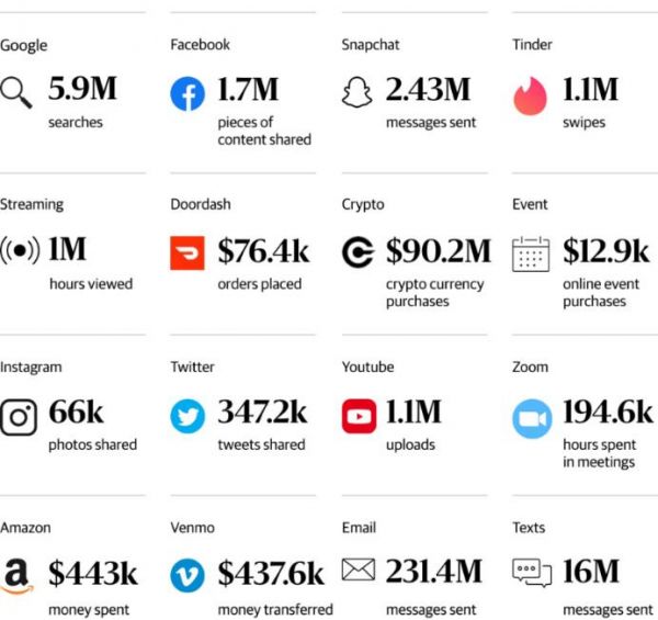 考虑到当今世界上每天都会产生的大量数据,数据中心的增长并不意外。下图展示了一些令人震撼的数据,比如每天每分钟有超过2.3亿封电子邮件和1600万条短信会被发送。此外,谷歌每分钟会发生590万次搜索,Facebook每分钟会新增170万条内容分享,Twitter每分钟会增加34万条推文。
