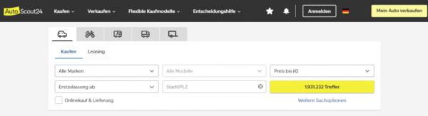 如果你希望买一辆自己的车,可以在AutoScout24网站(autoscout24.de)上查询(你或许注意到了,通常来说不推荐用“名词+数字”作为品牌名或域名,但在德国还挺流行)。同样,不懂德语的话,在浏览器里可以借助浏览器自带的翻译功能,或者干脆下载App,把语言设置为英语就好。