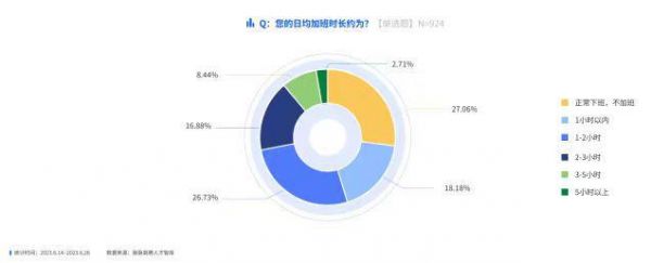 报告显示,中高端职场人26.73%的人会加班1-2小时,18.18%的人会加班1小时以内,16.88%的人会加班2-3小时,而超过3小时的加班人群比例则为11.15%。此外,2023年1-5月,38.96%的中高端人才实现了不同程度的月收入增长,38.31%的中高端人才月薪没有变化。