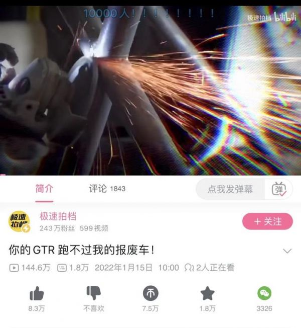 陈睿列举了两个内容分支:精品热门内容和优质垂直内容。前者即使以播放次数衡量仍旧表现突出,新的指标进一步凸显优势,相当于锦上添花;而后者则有望凭借播放分钟数实现数量级的飞跃——以UP主“极速拍档”发布的视频《你的GTR跑不过我的报废车!》为例,播放次数为144万,播放分钟数却高达2190万分钟。