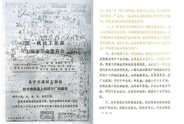 1978年,第一机械工业部与上海市革委会关于在上海引进国外汽车技术的审批文件,后经与多家国际车企反复洽商,大众首先脱颖而出并衍变为双方设立合资公司。