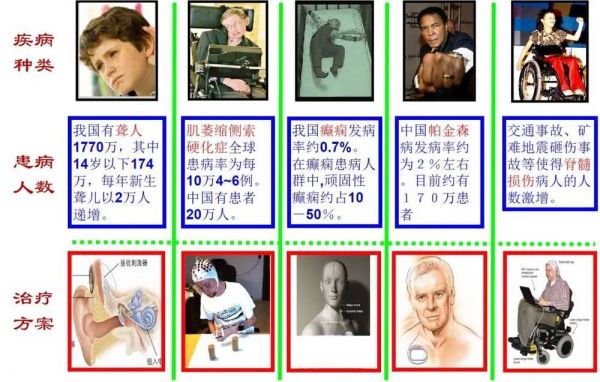 脑机接口的第一个价值是医学价值,人类面临的所有神经系统的疾病,都可以用脑机接口技术来解决,比如耳聋、肌萎缩侧索硬化症、癫痫、帕金森、脊髓损伤等。