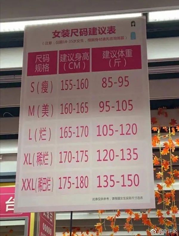 “尺码越做越小,说好听点是辣妹风、女团风流行,说难听点是纯纯制造尺码焦虑和尺码歧视。”莉莉(化名)向新零售商业评论表达着她的想法,而她所说的也正是网友争论的焦点。