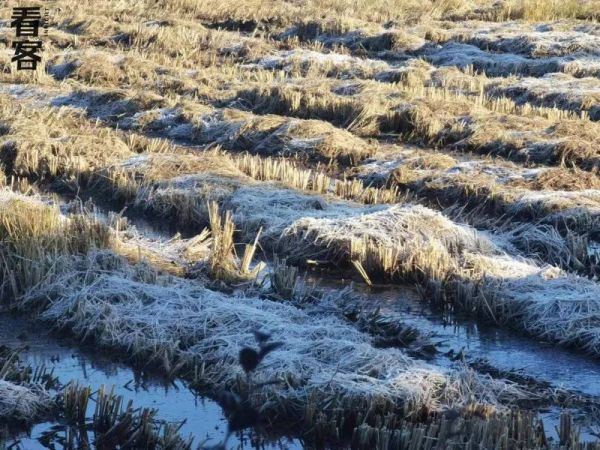 在农村工作的冬天,看到稻草上结了厚厚一层霜