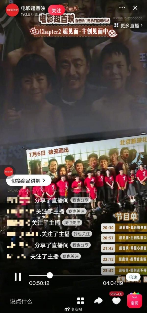 前几天,淘宝直播还和正在密集宣发的新片《八角笼中》达成合作,将首映搬进了直播间。