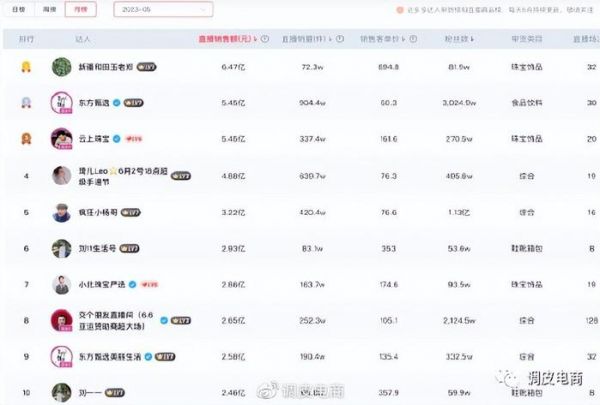 又到了月初,每月一次的抖音直播带货TOP主播排行榜又揭榜了,6月份是特殊的月份,每年6月似乎都会发生一些特别的现象,去年6月是东方甄选意外爆红,拯救了一家上市公司,也开启了抖音带货的新局面。