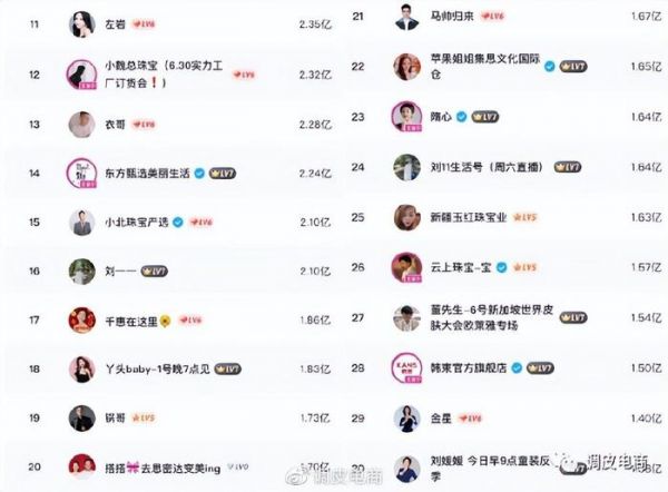 大家可以先浏览下榜单,看个大概,瞅一瞅自己心爱的主播在不在榜,如果不在榜也别急,我今天把达多多上TOP50的主播都列出来了,待会你们去后面翻翻:
