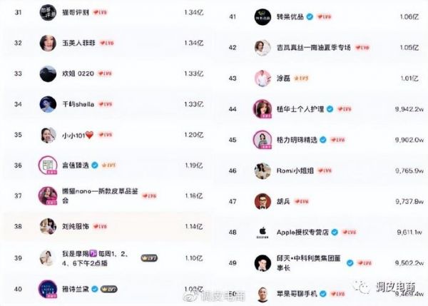 整个排名前50的主播里,还有多个都是销售苹果手机为主。