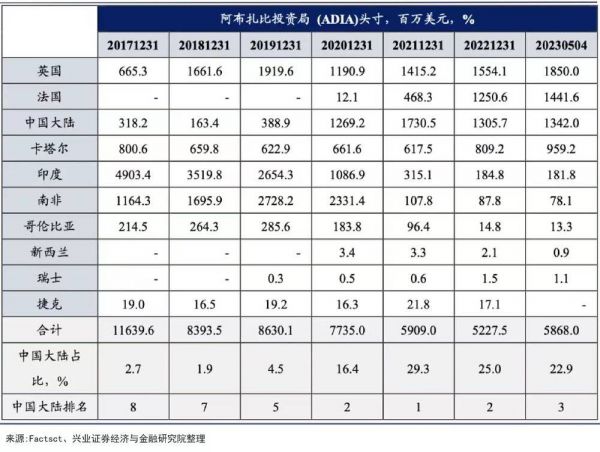 兴业证券数据显示,大陆资产在阿布扎比投资局的寸头占比,从2017年末的2.7%,飙升到了2023年一季度的22.9%,排名跃升至第3位。东方雨虹、格力电器、大全能源的股东中都有阿布扎比的身影。