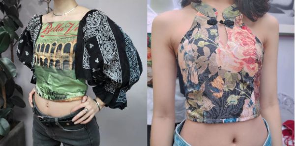 实际上,大多数古着店流通的vintage remake都是来自泰国的成品,这让很多产品显得雷同。泰国的remake偏辣妹风,布料少,做工相对粗糙,成本低。同时,这样的款式年轻有活力,在Y2K风盛行的这两年,很受年轻人欢迎。