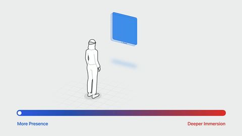 在App开启时默认进入共享空间(无论是窗口应用还是沉浸应用都是如此),共享空间中的App可以转到全空间,从而只运行1款应用。也就是说,Vision Pro无法像传统VR可以直接进入全沉浸模式,只能之后手动调整。