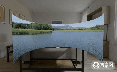 这里单独讲一下半沉浸模式,类似于发布会上讲到的浏览全景照片的效果,就是呈现一个180度半包围的沉浸,这时依然可以看到上下边的现实透视环境,而且你左右移动时这个半沉浸画框里的内容也对应的移动,整体上视觉沉浸感超级棒。