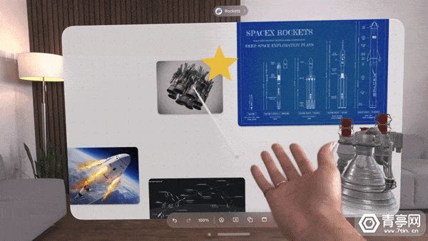 同时,visionOS还有两种虚拟空间状态:共享空间(Shared Space),支持同时运行多个应用,可共存;全空间(Full Space),独立显示1款应用。