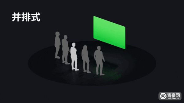 并排式简单就是几个人并排在一起观看一块大屏、看板。每个人可以共享自己的屏幕或文件等;