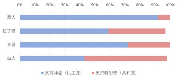 而且,黑人也是民主党最稳定的票仓——92%的黑人在2020年美国总统大选中把票投给了拜登,这个比例远远高于其他种族。