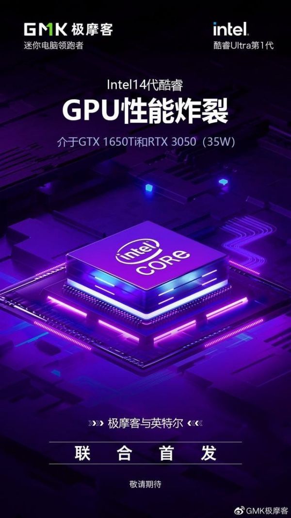 极摩客今日预热了搭载酷睿14代/Ultra 1代处理器的新一代迷你主机,此次与英特尔联合首发。官方海报显示,英特尔新一代处理器的核显性能介于GTX 1650 Ti和RTX 3050(35W)之间,具体性能尚未透露。