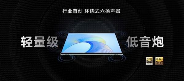 荣耀平板X8 Pro还搭载六扬声器,对比同档位产品的四扬声器、双扬声器有绝对的优势。荣耀平板X8 Pro在扬声器的布局排列上也做了创新,是行业首创环绕式布局的六扬声器平板。不同于一般的扬声器对称摆放,荣耀平板X8 Pro在底部还有两个特殊的出音孔,从底部发音,经过桌面反射,让声音的来源更为丰富,听音效果更好。荣耀平板X8 Pro的音效系统还通过Hires及Hires wireless小金标认证,完美适配各类影音娱乐场景,让用户尽享沉浸式高品质音频。