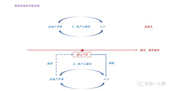 良性的模式是大循环模式,地方政府靠地产融资去支持核心产业,核心产业创造更多就业岗位以吸引更多人口,更多人口带来更加繁荣的房地产市场。