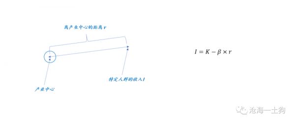 即便我们假设收入和产业中心距离保持线性关系,人群的收入分化也很大: