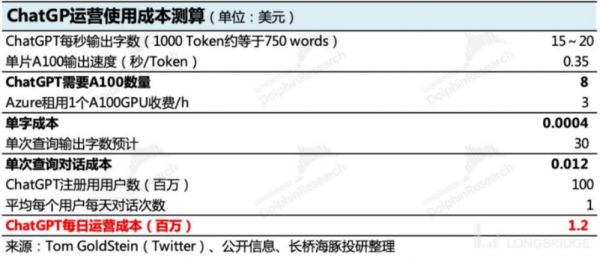 相比训练成本,AI功能的运营维护市场规模更大。根据海豚君先前的测算,调用Chatgpt给出30~50字的回答的单次成本约1~2美分之间,考虑到后续算力提升,成本下降的空间,我们假设中期内AI单次回复成本为1美分。