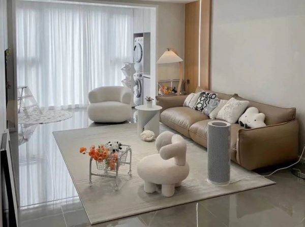 只要留有1平米左右的空间,就可以放一个懒人沙发或者mini单人沙发。茶几、沙发、电视、背景墙、吊顶...这几样年轻人统统不想要,也不喜欢。