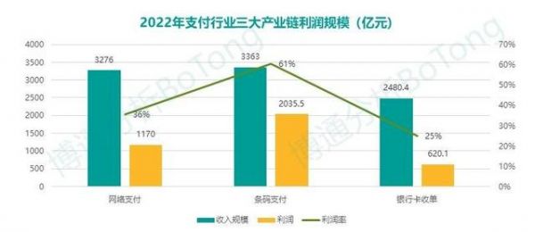 图源:博通咨询博通咨询披露的《非银行支付行业年度专题分析2023》显示,2022年,网络支付行业整体收入规模为3276亿元,扣除发卡服务费和网络服务费后,利润可达1179亿元。