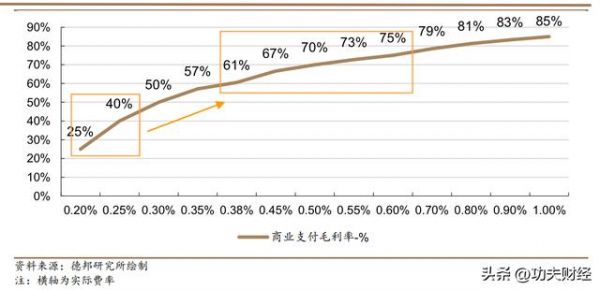 图源:德邦证券德邦证券研报显示,假设微信支付的成本费率为0.15%,按线下0.38%、线上0.6%的标准费率测算,腾讯线下、线上支付的毛利率分别可以达到61%、75%。