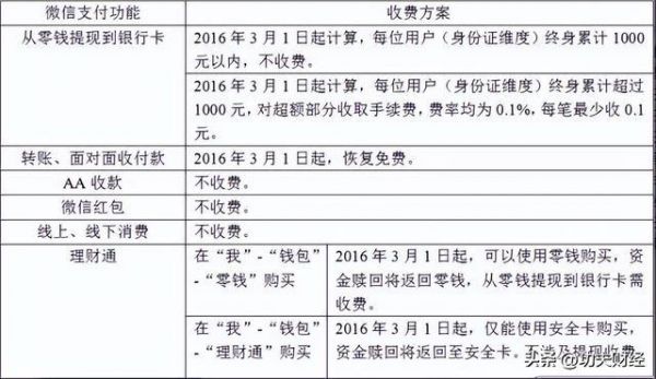 图源:微信2016年2月,微信支付发布公告,自3月1日起,微信支付将对超额提现交易收取手续费,每个账号仅享有1000元免费提现额度,超过额度后,提现手续费将按照提现金额的0.1%收取。