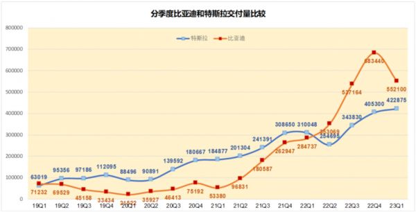 从2022年2季度开始,特斯拉的季度交付量就被比亚迪拉开了。