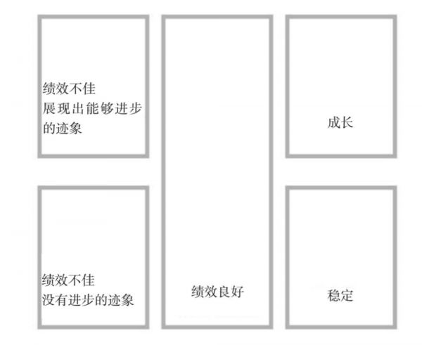1. 表现不佳-没有进步迹象(左下角):已指出问题,并进行指导,但仍然没有任何进步迹象。