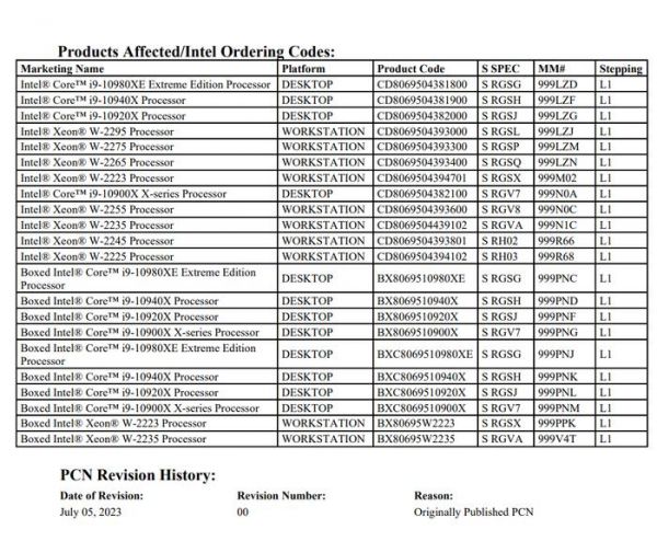 据英特尔最新的产品变更通知(PCN),英特尔已停止生产 Cascade Lake-X 和 Cascade Lake-W 系列。