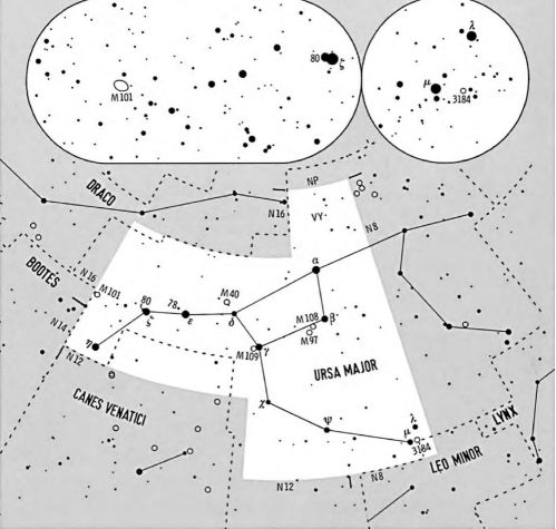 M101星系位于大熊座“尾巴”处,与著名的北斗七星斗柄末端的开阳、摇光二星构成一个等腰三角形,在开阳西偏南、摇光北偏西各约5度的位置。