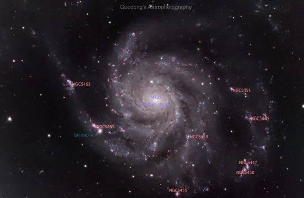 2023年5月20日,一名日本爱好者在著名的北天风车星系 M101中发现了一颗超新星,超新星编号是SN2023ixf。