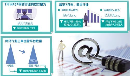 当下,P2P网贷行业规模不断缩小,平台退出数量不断增加。网贷之家最新数据显示,7月份P2P网贷行业的成交量为900.28亿元,同比下降62.19%,成交量基本与上月持平。截至7月末,网贷行业正常运营平台数量跌破800家整数关口,下降至787家,相比6月底减少了30家。