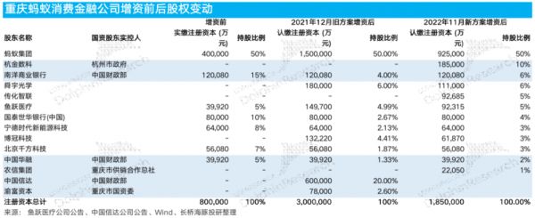 要满足目前蚂蚁的贷款体量,只能给它的消费金融公司增资,在最新2022年底的增资中,监管部门批准重庆蚂蚁消金增资105亿,且主要新增股东是杭州政府实控的公司,既有助于蚂蚁支撑更大规模的借贷业务,也标志着蚂蚁旗下的消费贷款业务整改效果获得了监管部门的认可。