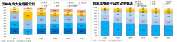 甚至根据我们的判断,抖音和快手纯直播电商模式将在2024年后贴近天花板,若不考虑抖快的货架电商模式,那么从2024年起电商大盘的增量甚至是没被完全吃完。围绕着抖快能否在货架电商上也做到和传统电商平台分庭抗礼的问题,2024年后电商间的格局有望迎来一次新的洗牌,赢家将拿走未被分配完的蛋糕。