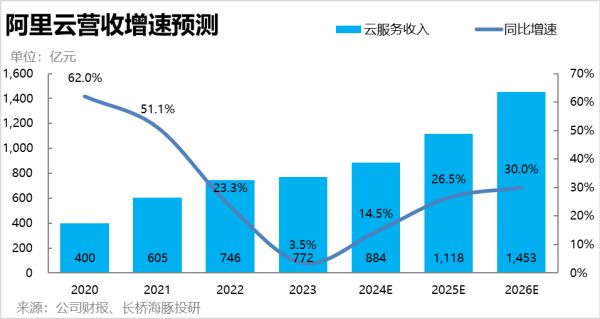 因此,可以预见阿里的云服务增速从2023会向行业增速靠拢,不过电信运营商占优的趋势在近几年应当也还会延续。